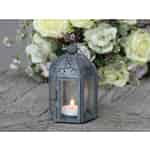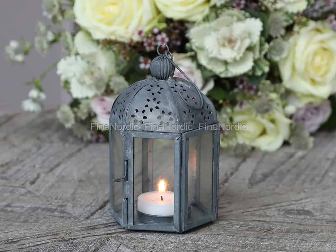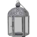 Diese Chic Antique Laterne zeichnet sich durch ihre hübsche perforierte Oberseite und ihre sechseckige Form aus. Die Oberseite der Zinklaterne ist mit einem gut aussehende Blumenmuster geschmückt. Ihre sechs Seiten bestehen aus Glas, sodass Sie das Kerzenlicht aus allen Richtungen genießen können. Eine der Glasseiten fungiert dazu auch als Tür und Sie können sie anhand eines kleinen Metallschieber öffnen und schließen. Stellen Sie einfach ein Teelicht hinein, zünden Sie es an, schließen Sie die Tür und genießen Sie das beruhigende Licht. An der Oberseite der Laterne ist ein Haken angebracht, mit dem die Laterne leicht aufzuhängen geht. Alternativ können Sie sie auch einfach auf einer geraden und sicheren Oberfläche stehen lassen. Die Metalllaterne ist eine schöne Dekoration für das Zuhause und kann auch in nahezu jedem Raum verwendet werden. Sie können sie ganz alleine hinstellen oder mit einer der anderen vielen fantastischen Chic Antique Metalllaternen kombinieren, die wir zur Verfügung haben.