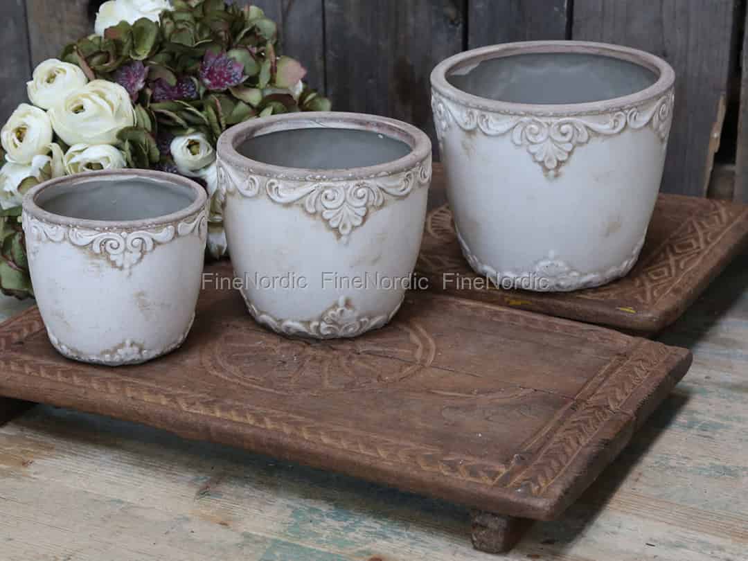 Hier online kaufen, Marcy Blumentopf mit französischem Dekor Antique Creme Ø 13 cm, von Chic Antique.