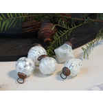 Die attraktiven Mini Weihnachtskugeln in Antik Creme von Chic Antique lassen die Herzen der Deko Fans höher schlagen. Die Kugeln werden als 5er Set in einer Seidentüte geliefert und sind alle verschieden geformt. Das cremige Weiß glänzt an vielen Stellen silbrig, ganz in Shabby Chic Stil. Die nostalgisch aussehenden Weihnachtskugeln schmücken den Weihnachtsbaum genauso schön wie einen Adventskranz oder eine Kiefernzweig in der Vase. Hübsch eingepackt in der Seidentüte bieten sie sich auch als schönes Gastgeschenk an, das kleine Dankeschön für die Dinner-Einladung in der Weihnachtszeit.