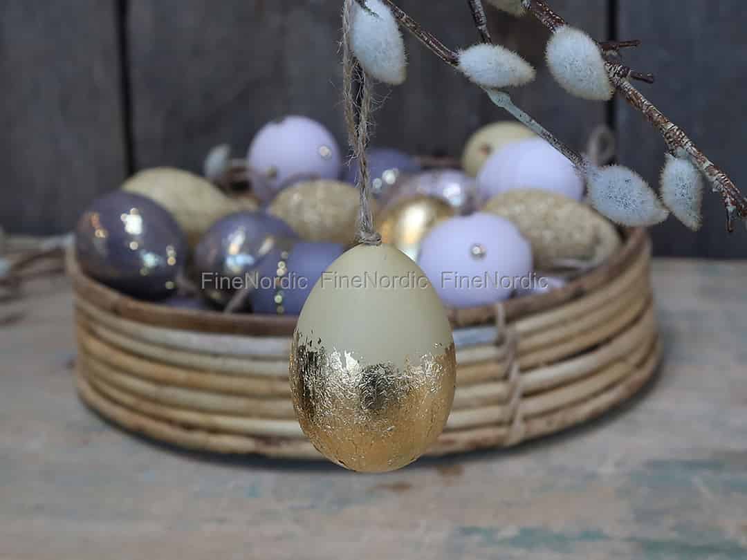 Verleihen Sie Ihrer Osterdeko ein luxuriöses Aussehen mit diesem Chic Antique Osterei mit gold-farbenem Boden. Das Sahara Sun Ei hat eine gelbe obere Hälfte und die untere Hälfte ist goldfarben. Die beiden Farben sehen einfach fantastisch zusammen aus und Sie können das Ei auch mit ein paar der anderen Chic Antique Ostereiern mit goldenen Details kombinieren. An diesem Plastikei ist eine Juteschnur befestigt, mit der es ganz leicht an einem Ast oder Kranz aufzuhängen geht. Schauen Sie sich gerne mal die schöne Auswahl an Chic Antique Ostereiern an, die wir in unserem Webshop zur Verfügung haben.