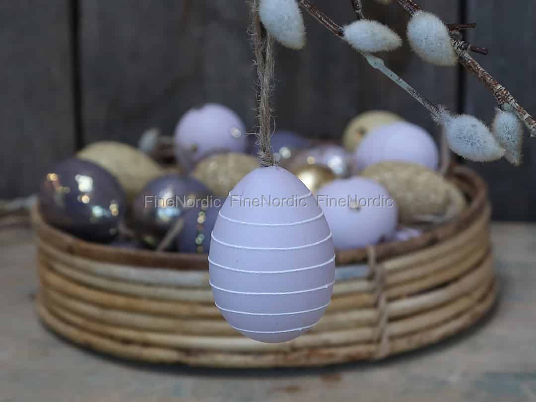 Hier online kaufen, Osterei mit Weiß Glimmer Streifen Lavender Fog, von Chic Antique.
