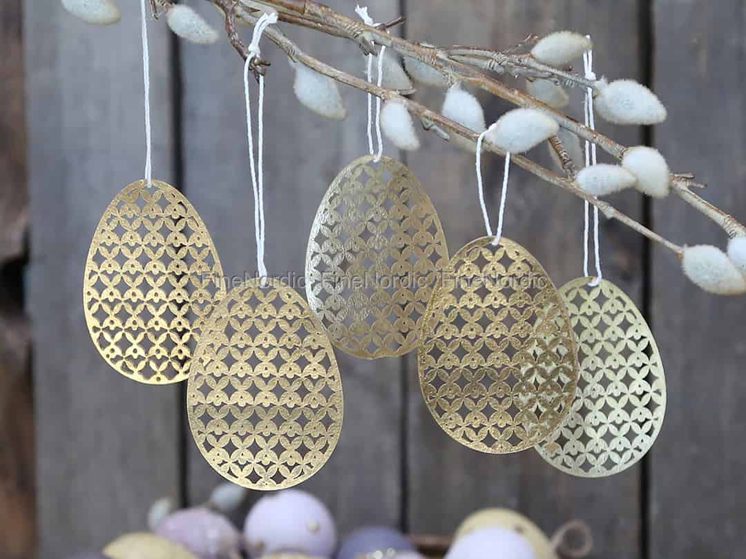 Verleihen Sie Ihrem Osterstrauß mit diesen Scherenschnitt Ostereiern von Chic Antique ein wenig Glanz und Luxus. Die goldfarbenen Eier haben ein wunderschönes geometrisches Blumenmuster und an jedem ist eine weiße Schnur angebracht, sodass sie ganz leicht aufgehängt werden können. Dieses 5er Set Papiereier ist eine hübsche Osterdekoration für das Zuhause sowie auch gut aussehende Anhänger für ein paar schön eingepackte Ostergeschenke. Die adretten Chic Antique Ostereier mit Blumenmuster sind auch in Creme erhältlich.