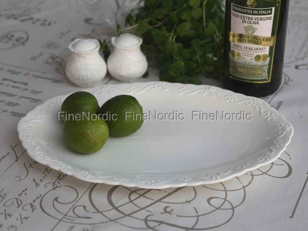 Mit der ovalen Provence Platte von Chic Antique wird das Servieren leicht gemacht. Die 24 x 35 cm Platte bietet genügend Platz für kleine Appetithäppchen, verschiedene Sorten Käse und Trauben oder kleine Gebäckstücke wie Muffins oder Cupcakes. Mit der attraktiven Servierplatte aus der Chic Antique Geschirrserie Provence kann man seinen Gästen die Leckereien stilvoll reichen. Nach Benutz kann sie in der Spülmaschine gewaschen werden und ist dann für den nächsten Einsatz bereit. Ob bei Familienfeiern, Gartenpartys oder in Alltag, die Chic Antique Platte Provence ist immer zu gebrauchen und sie ist nicht nur nützlich, sondern sieht mit ihren Verschnörkelungen und welliger Kante auch wunderschön aus.