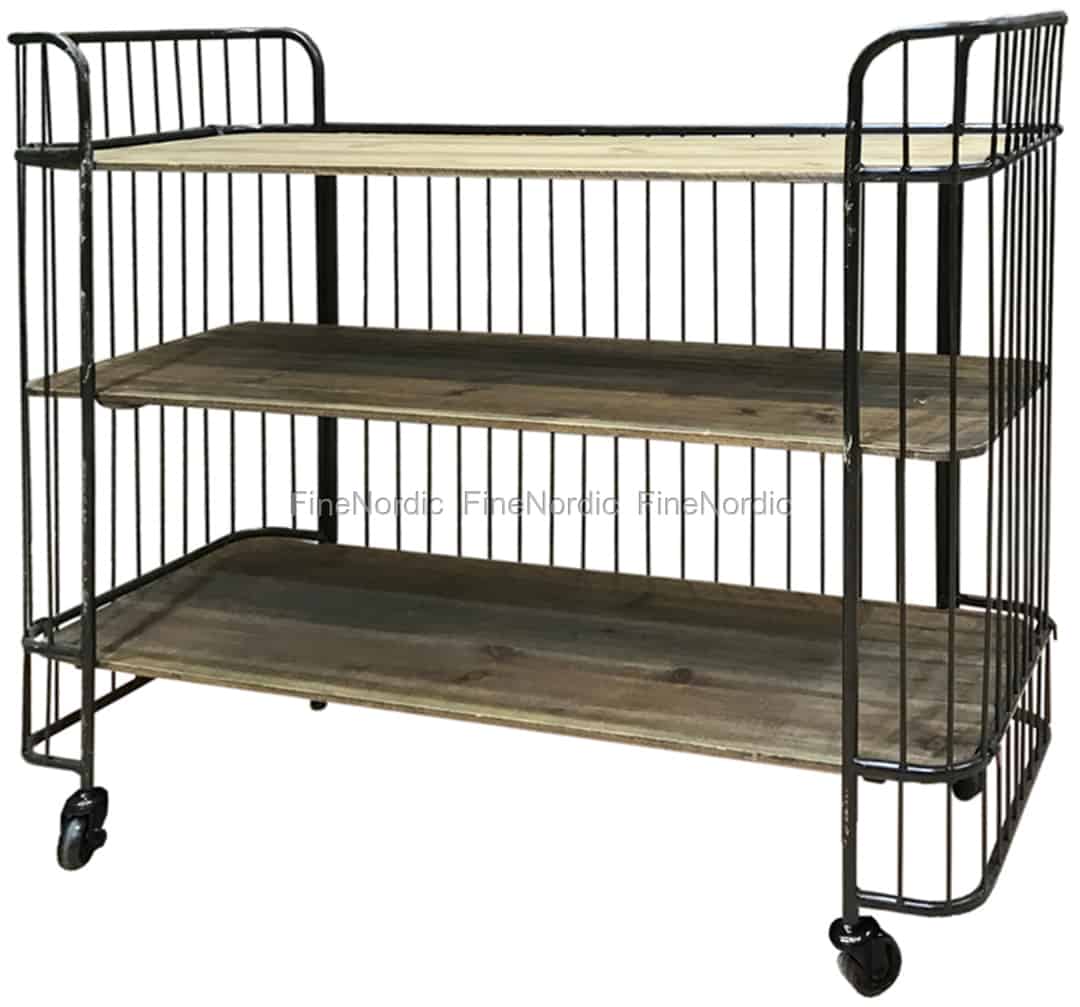 Chic Antique Postwagen mit 3 Regale Antique Schwarz