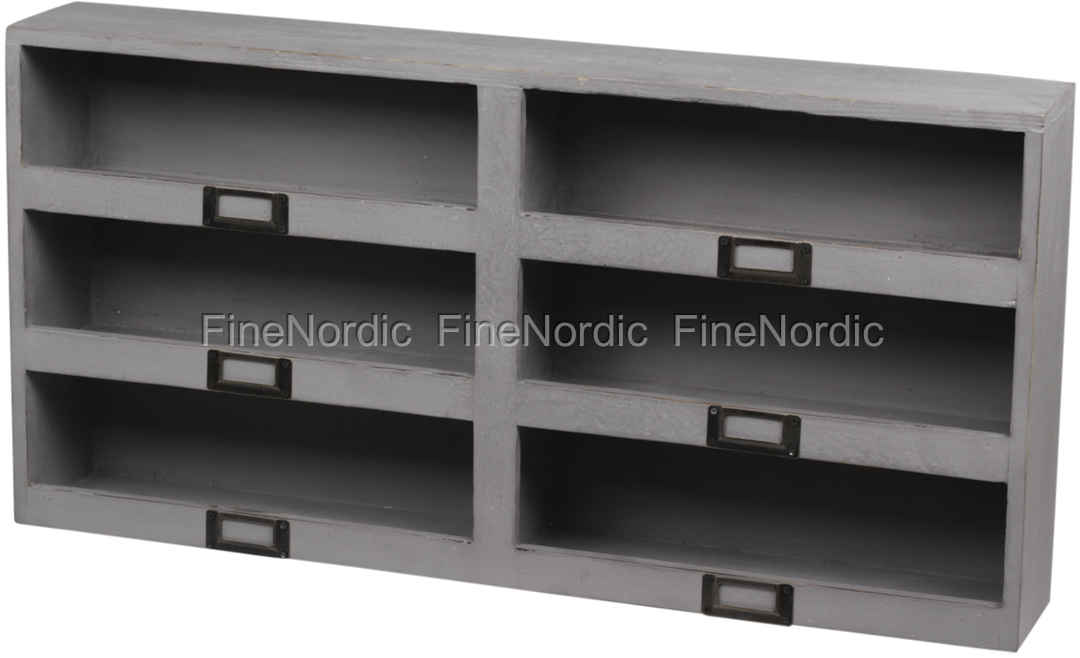 Dieses Chic Antique Regal mit sechs Fächern ist der Traum eines jeden Shabby Chic Liebhabers. Es ist aus Holz gefertigt und passt mit seiner French Grey Farbe in jedes Wohnambiente. Sie können es leicht an den beiden Bügeln auf der Rückseite aufhängen. Fügen Sie jedem Metallhalter ein kleines Etikett hinzu, das angibt, welcher Inhalt sich in jedem Fach befindet. Das Regal wird ein schöner Kontrast in einem modernen Zuhause sein und wird super in ein Haus im Vintage Stil passen. Es ist auch eine schöne Geschenkidee für einen Shabby Chic Fan.