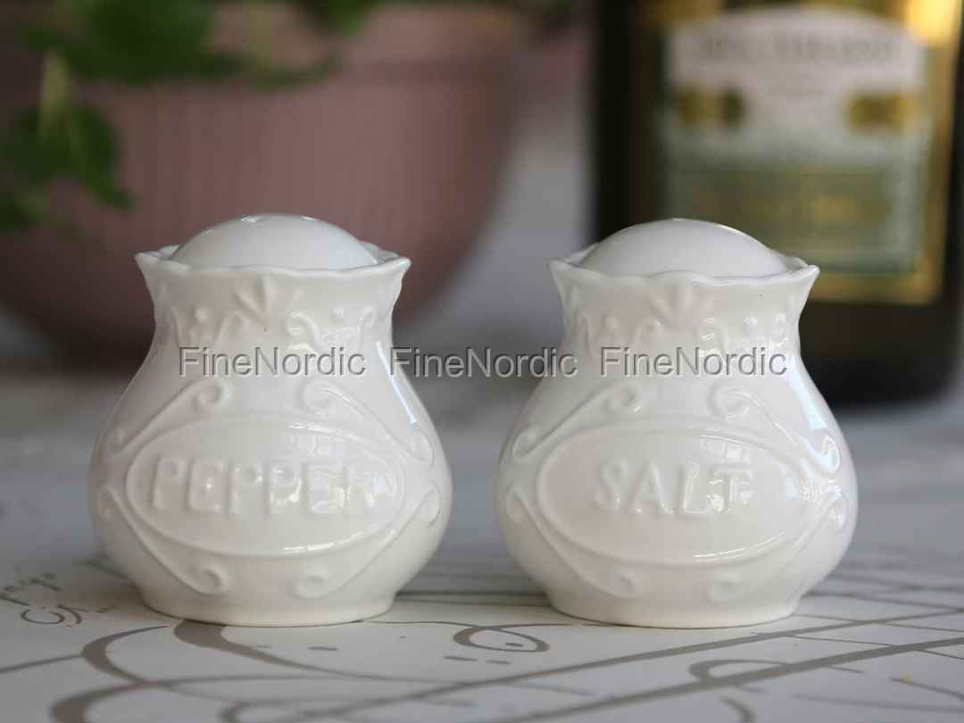 Das Salz- und Pfefferstreuer Set Provence von Chic Antique ist eine schöne Ergänzung für Ihre Provence Geschirrsammlung. Die Streuer bestehen aus den für die Provence Geschirrserie so markanten verspielten Verschnörkelungen und welligen Kanten. Das weiße dickbäuchige Salz- und Pfefferstreuer Set liegt gut in der Hand und wird es mal schmutzig kann es einfach in der Spülmaschine gereinigt werden und steht dann gleich wieder für den nächsten Einsatz bereit.