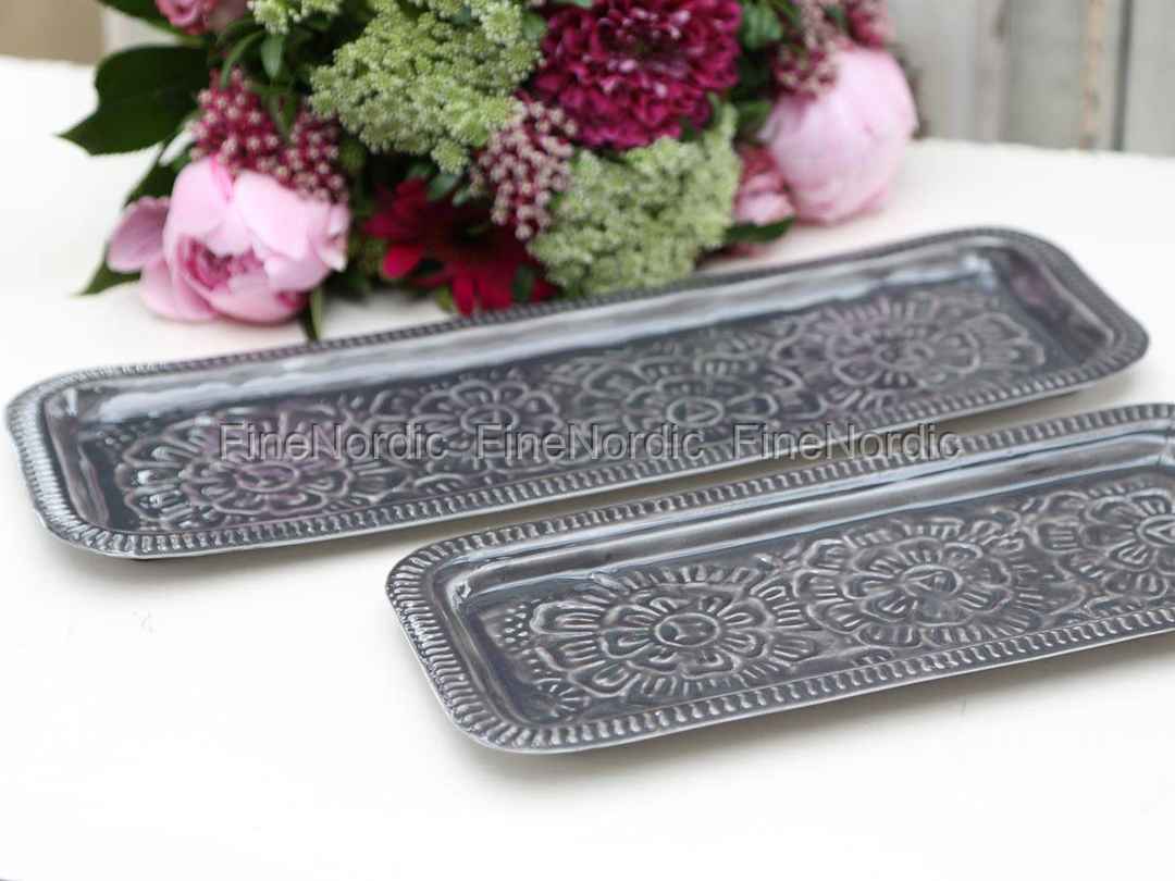 Chic Antique Schüssel mit Muster - Emaille Look Grau 12 x 36 cm