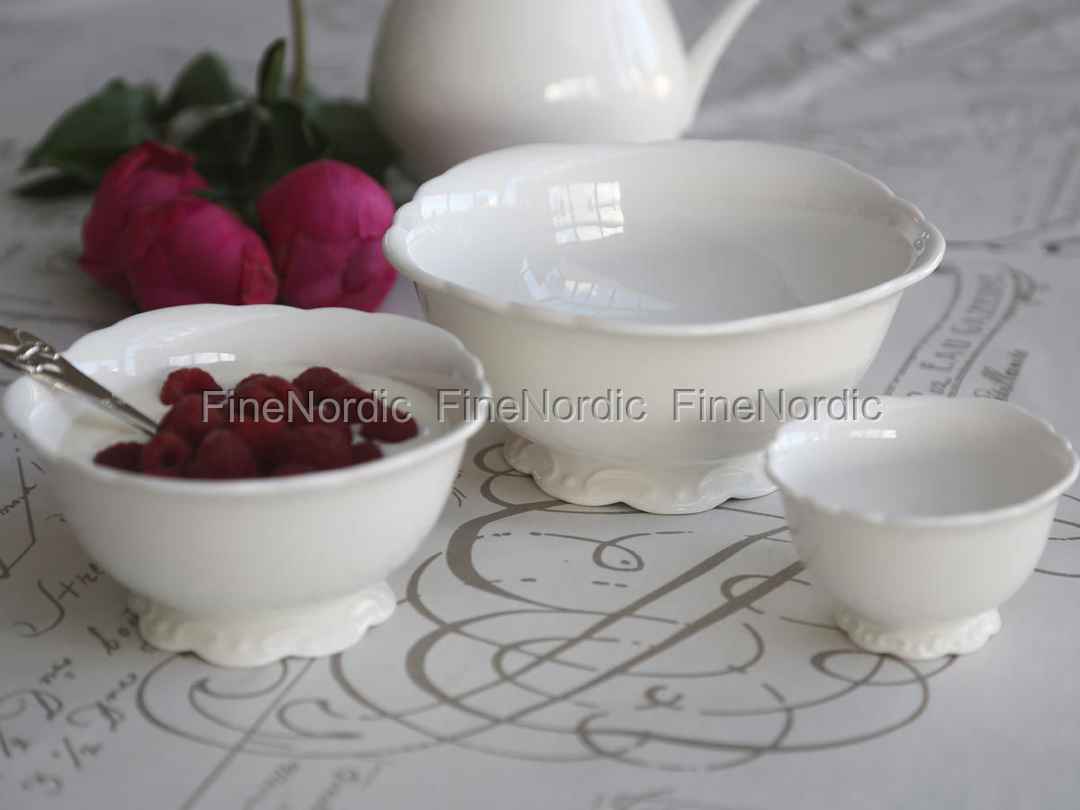Das entzückende 3er Set Provence Schüsseln von Chic Antique sieht nicht nur fantastisch aus, sondern ist auch super praktisch. Denn so hat man für jeden Verwendungszweck die richtige Größe Schüssel parat. Die kleine Schüssel kann für Soßen und Dips verwendet werden, die mittlere für Müsli oder einen leckeren Nachtisch und in der großen können Chips oder andere Leckereien gereicht werden. Die attraktiven Schalen haben die für die Provence Geschirrserie so markanten Verschnörkelungen und gewellten Kanten und sind eine wunderbare Ergänzung für Ihre Provence Geschirrsammlung.