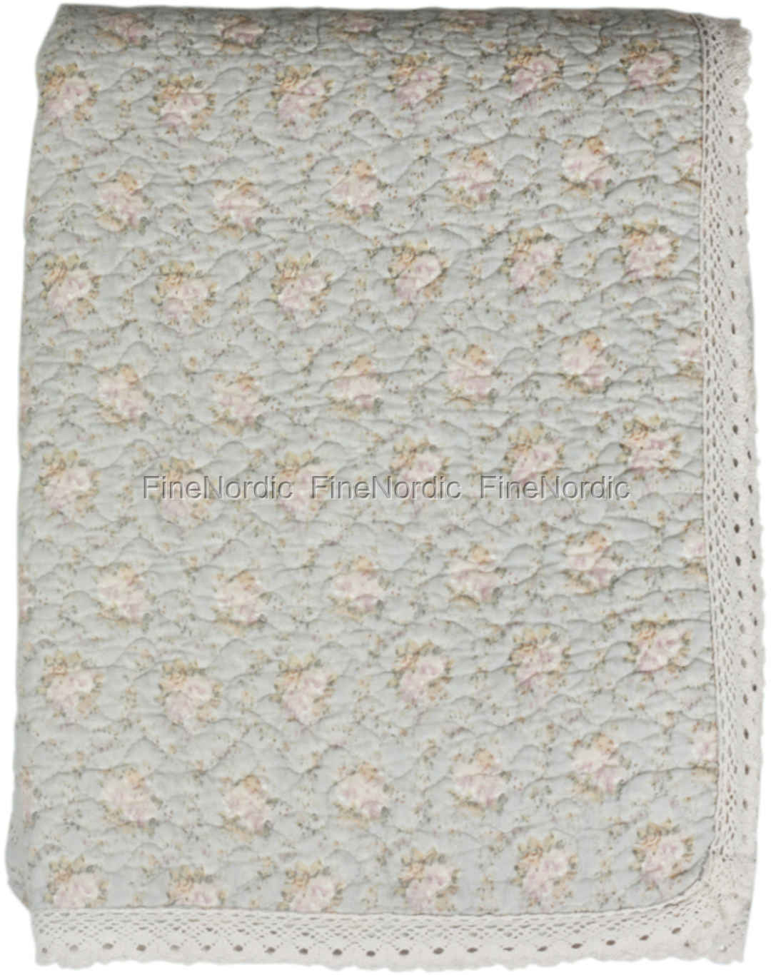 Steppdecke mit Blumendruck und Spitzenkante Antique Verte von Chic Antique.