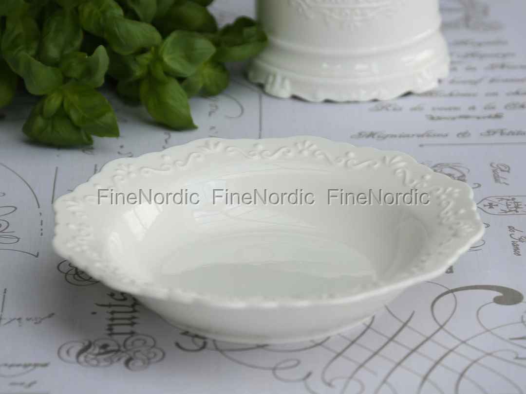Lust auf ein Süppchen? Aus dem Chic Antique Suppenteller Provence schmeckt sie gleich nochmal so gut. Der weiße tiefe Teller überzeugt mit seinen, für die Provence Serie so markanten, gewellten Kanten und den verspielten Verschnörkelungen am Tellerrand. Mit ihm ist der Tisch gleich schön gedeckt und er sieht fantastisch neben den anderen Geschirrteilen der Chic Antique Provence Serie aus. Durch sein schlichtes doch stilvolles Aussehen kann man ihn gut mit bunten oder gemusterten Servietten auf den Tisch stellen, denn so kommt die weiße Schönheit noch mehr zur Geltung.