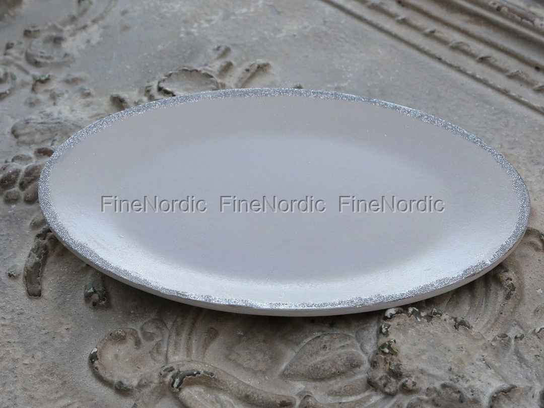 Tablett mit Glitterkante Altrosa Oval 19 x 28 cm, von Chic Antique.