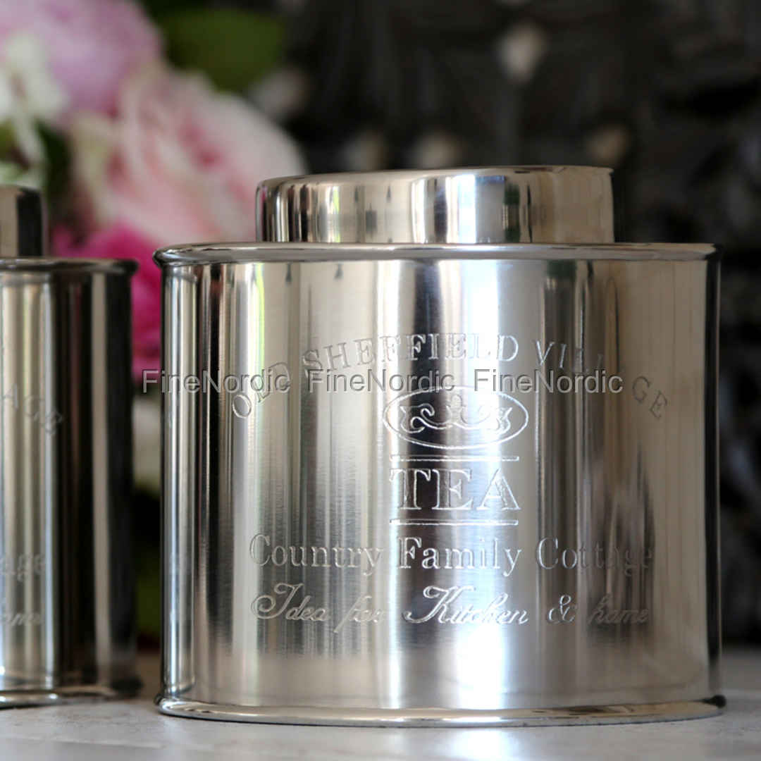 Teedose mit Text Tea Antik Silber, von Chic Antique.