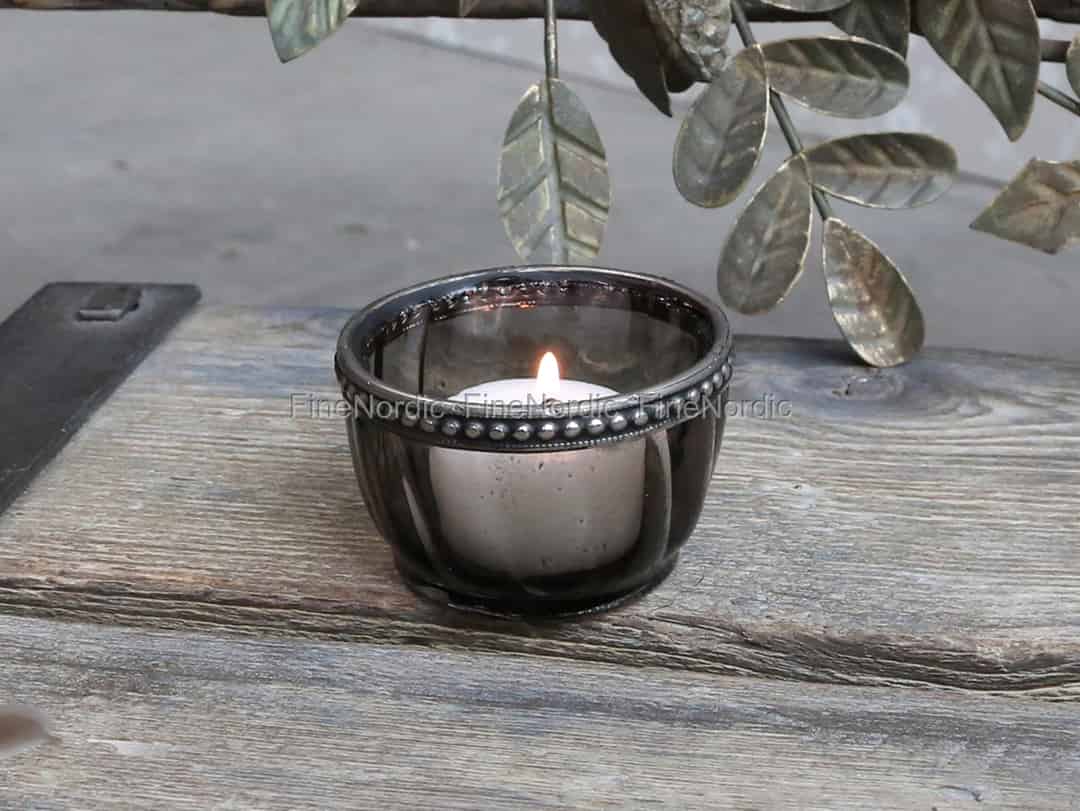 Hier online kaufen, Teelichthalter mit Perle-rand Dunkelgrau D, von Chic Antique.