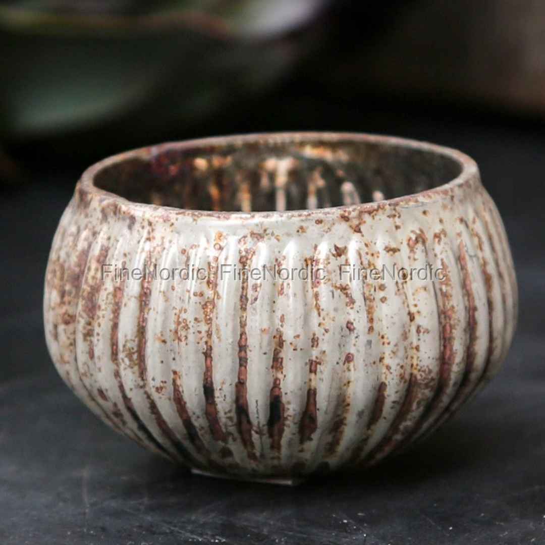 Teelichthalter mit Rillen Pearl H 4 cm, von Chic Antique.