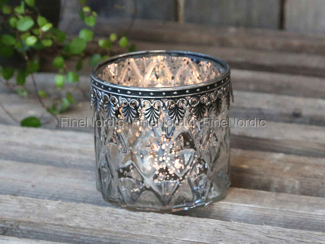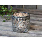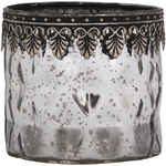 Chic Antique Teelichthalter mit Silber Decor Glas H 7,5 cm