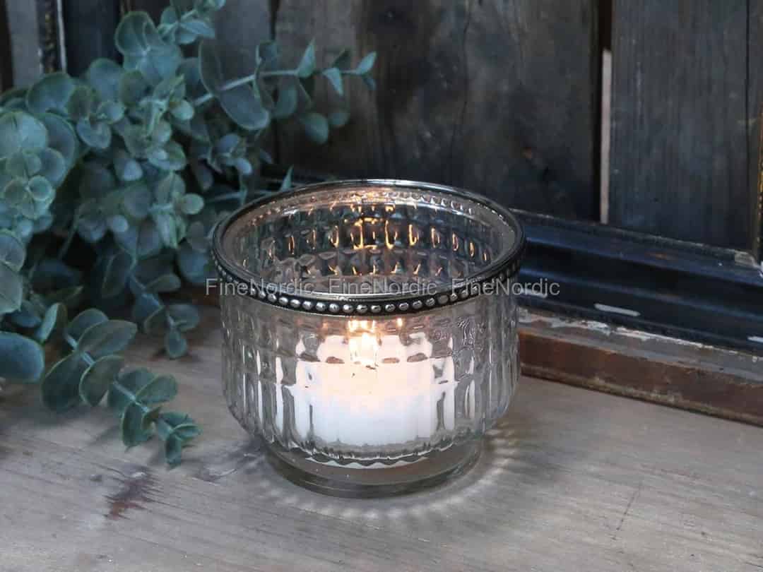 Teelichthalter mit silber Perlenkante Klar von Chic Antique.