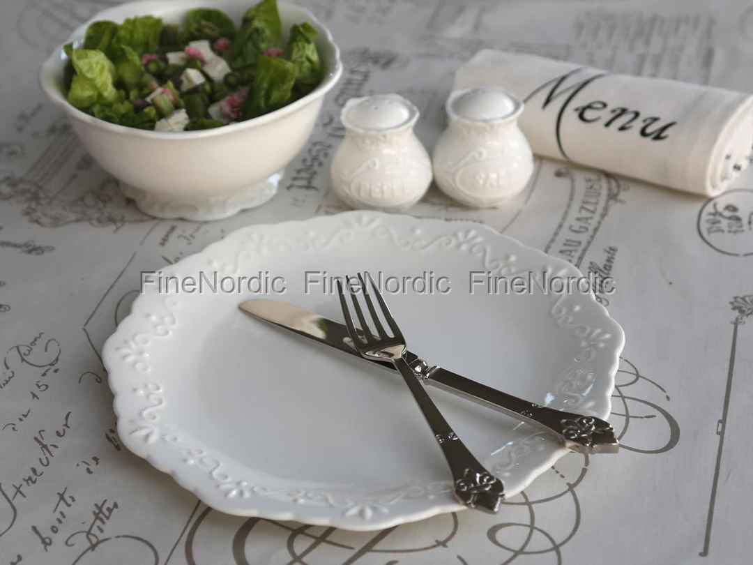 Der Chic Antique Teller Provence ist ein attraktiver Teller für den Alltag, aber auch an besonderen Anlässen darf er auf den Tisch. Die weiße Farbe, die gewellte Kante und die Verschnörkelungen am Rande des Tellers lassen gleich erkennen, dass er ein Teller aus der beliebten Chic Antique Geschirrserie Provence ist. Er hat einen Durchmesser von 27 cm und ist spülmaschinengeeignet. Der weiße Teller bietet einen schönen Kontrast auf einer bunten Tischdecke oder neben einer gemusterten Stoffserviette an. Er ist eine wunderbare Ergänzung für Ihre Provence Geschirrsammlung.