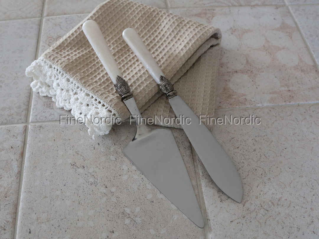 Das Chic Antique 2er Set Kuchenbesteck in Perlmutt-Look sorgt für eine Portion Eleganz auf dem Kaffeetisch. Mit dem Tortenheber und Kuchenmesser kann man die frischgebackene Torte stilvoll den Gästen servieren. Im Alltag, wie an Festtagen, kommt das Kuchenbesteck zum Einsatz. Das Chic Antique Tortenheber und Kuchenmesser Set eignet sich auch als hübsche Geschenkidee für die Hobbybäckerin in Ihrem Freundeskreis.