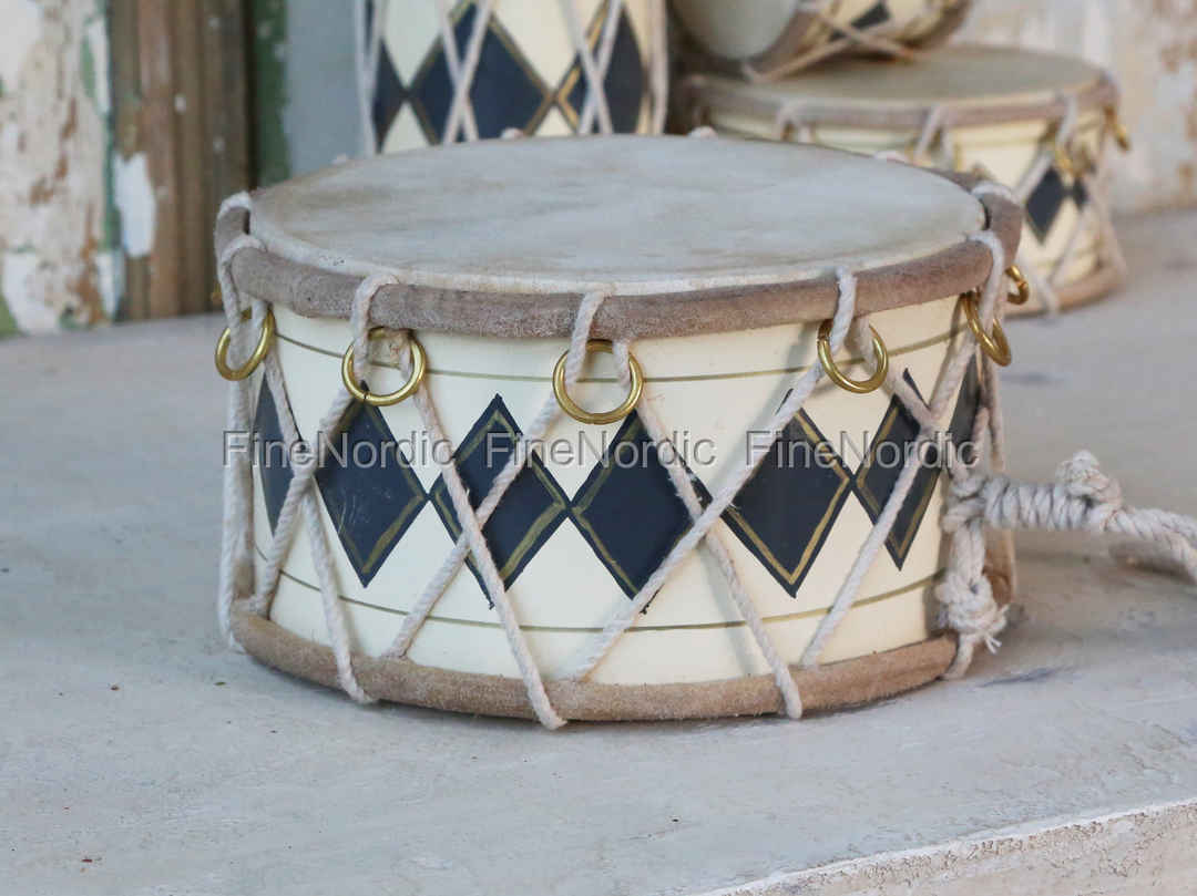 Chic Antique Trommel mit Leder Antique Creme Handgemacht Ø 18 cm