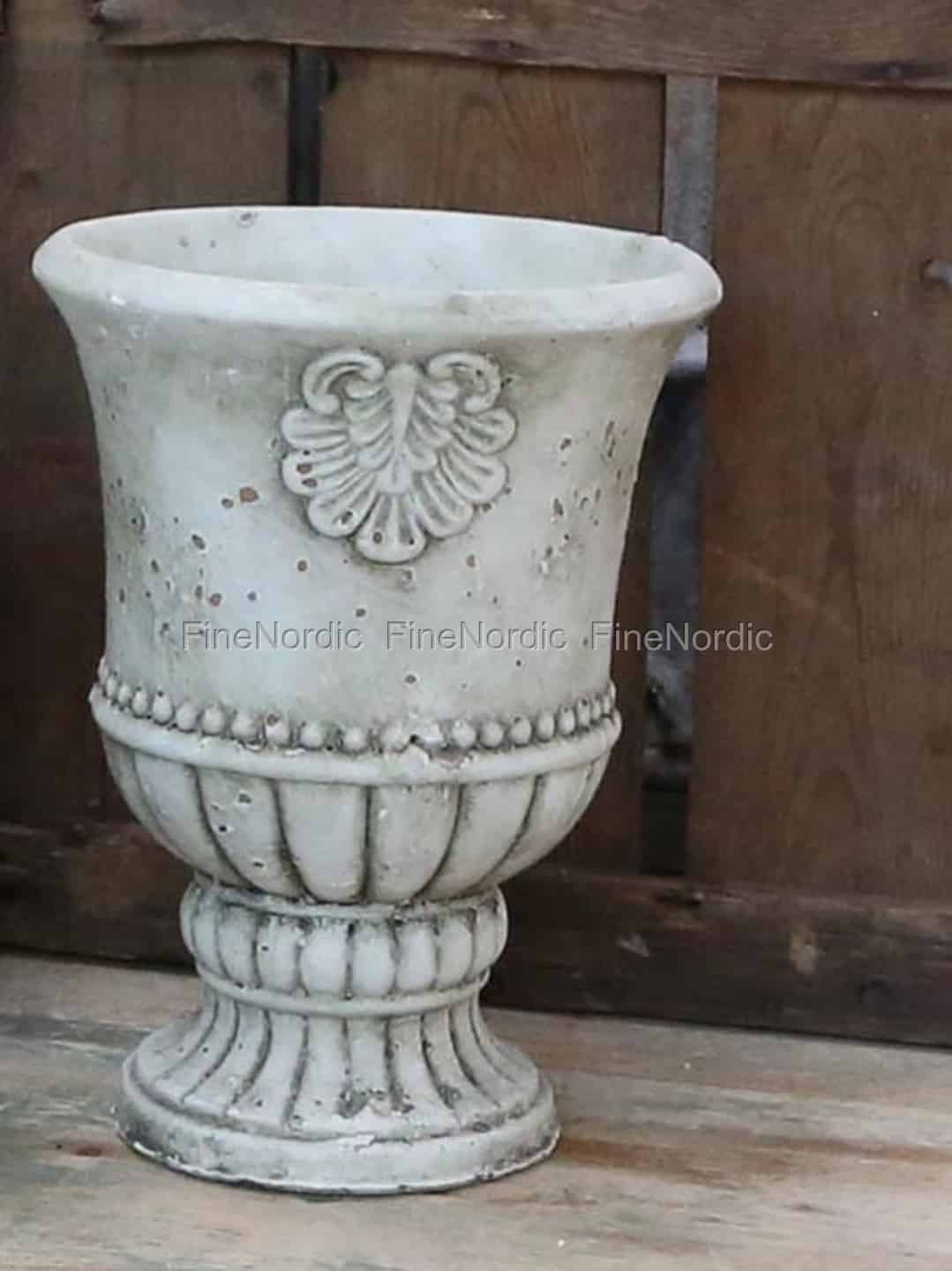 Chic Antique Übertopf auf Fuß m. Deko und Perlenkante Staubig Grün Groß