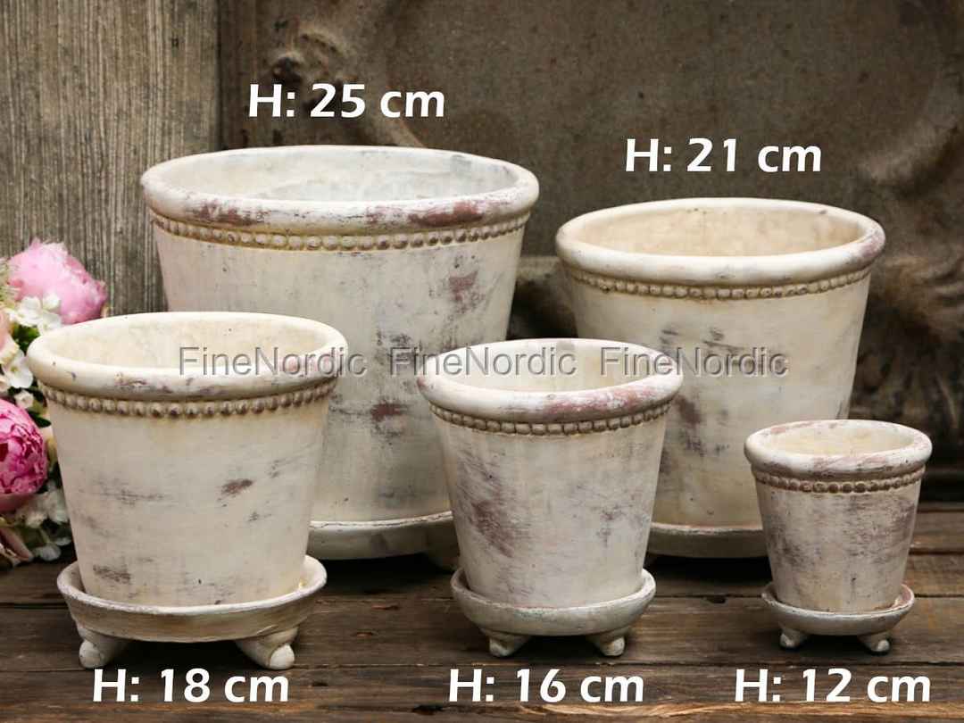 Übertopf mit Perlenkante mit Untersetzer - Frostsicher - Antik Creme H 12 cm, von Chic Antique.