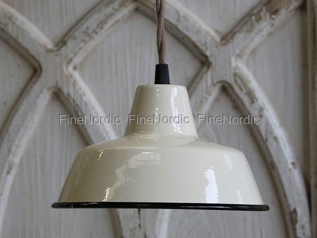 Vintage Emaille Lampe Creme mit schwarzem Rand Ø 20 cm, von Chic Antique.