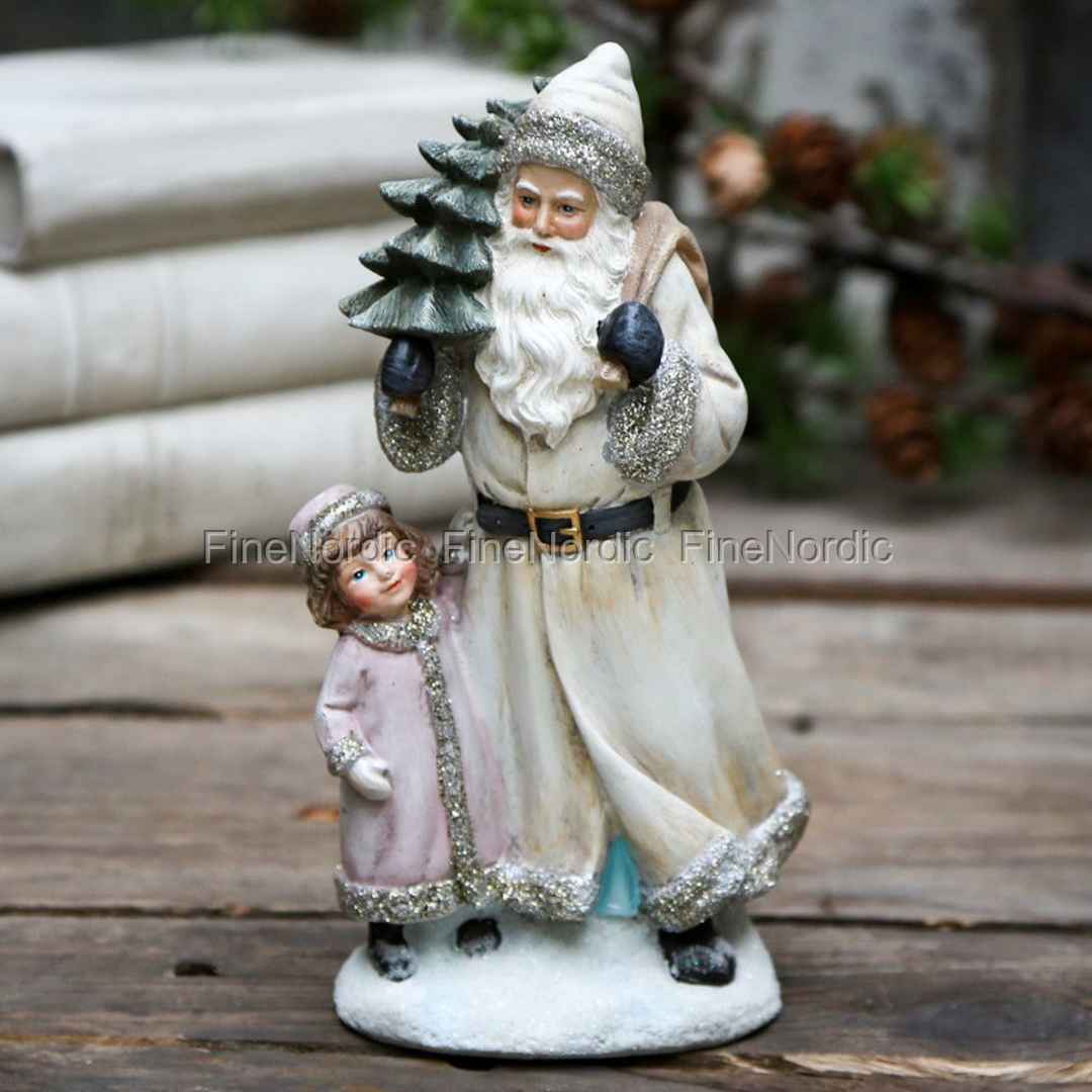 Chic Antique Vintage Weihnachtsmann mit Mädchen Cream