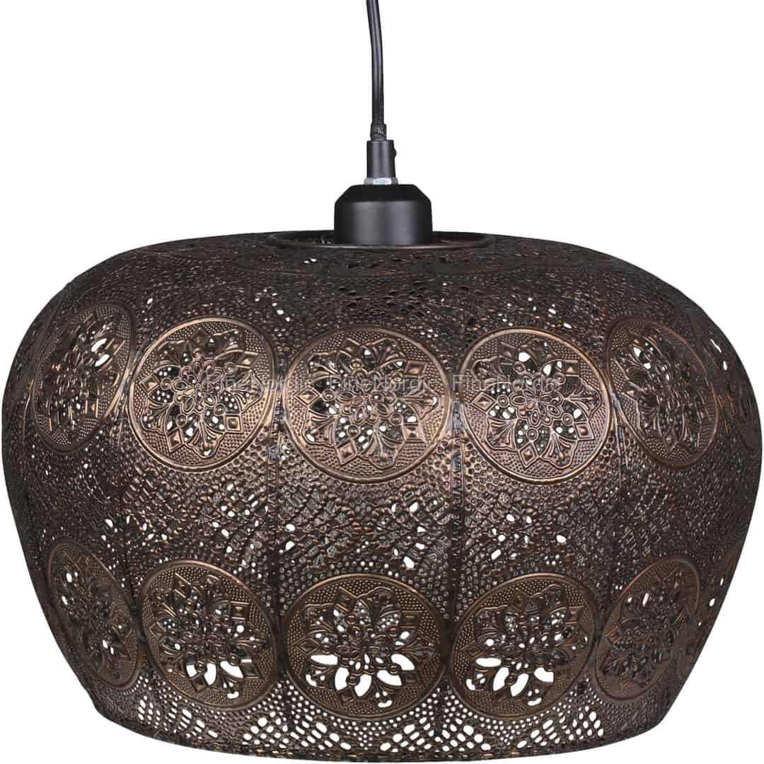 Die alte Vire Lampe von Chic Antique zeichnet sich durch ihre antike Bronzefarbe und ihr wunderschönes Muster aus. Die Eisenlampe wird mit einer E27 Fassung geliefert und Sie können eine 40 W Glühbirne verwenden. Das 1,20 m lange Kabel der Hängelampe endet in einem Baldachin, mit dem Sie es an der Decke befestigen können. Sie ist eine schöne Lampe für ein Wohn- oder Esszimmer sowie auch für eine Wohnküche. Die Vire Lampe in Antik Bronze von Chic Antique ist auch in einer größeren Version und mit einem anderen, aber ebenso schönen Muster erhältlich.