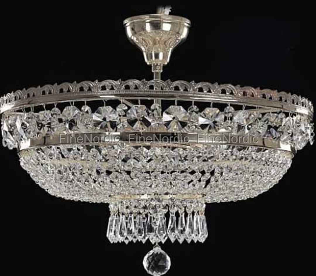 Klassischer Kristall-Deckenkronleuchter mit sechs Leuchten in Inneren aus echtem Swarovski Kristall. Die Metallteile sind aus Silber-Finish (Messing vernickelt). Ein Qualitätsprodukt, von klassischen Traditionen in der Tschechischen Republik hergestellt.
