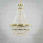 Herrlicher Kristall-Korblüster mit drei Leuchten in Inneren aus echtem Swarovski Kristall. Die Metallteile sind aus Gold-Finish (Messing poliert). Ein Qualitätsprodukt, von klassischen Traditionen in der Tschechischen Republik hergestellt.