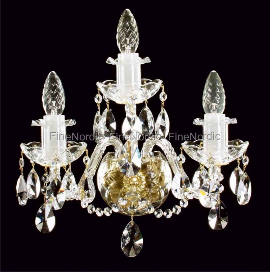 Kristall-Wandleuchter mit 3 Armen - Gold-Finish - Swarovski Kristall, von Elite Bohemia. Ein Qualitätsprodukt, von klassischen Traditionen in der Tschechischen Republik hergestellt.