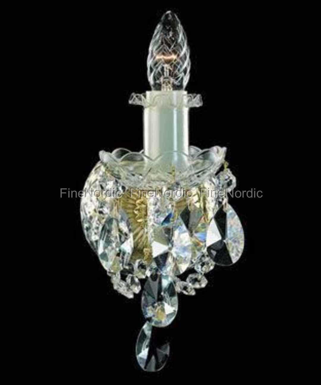 Wunderschöner Kristall-Wandleuchter mit einem Arm aus echtem Swarovski Kristall. Die Metallteile sind aus Silber-Finish (Messing vernickelt). Ein Qualitätsprodukt, von klassischen Traditionen in der Tschechischen Republik hergestellt.