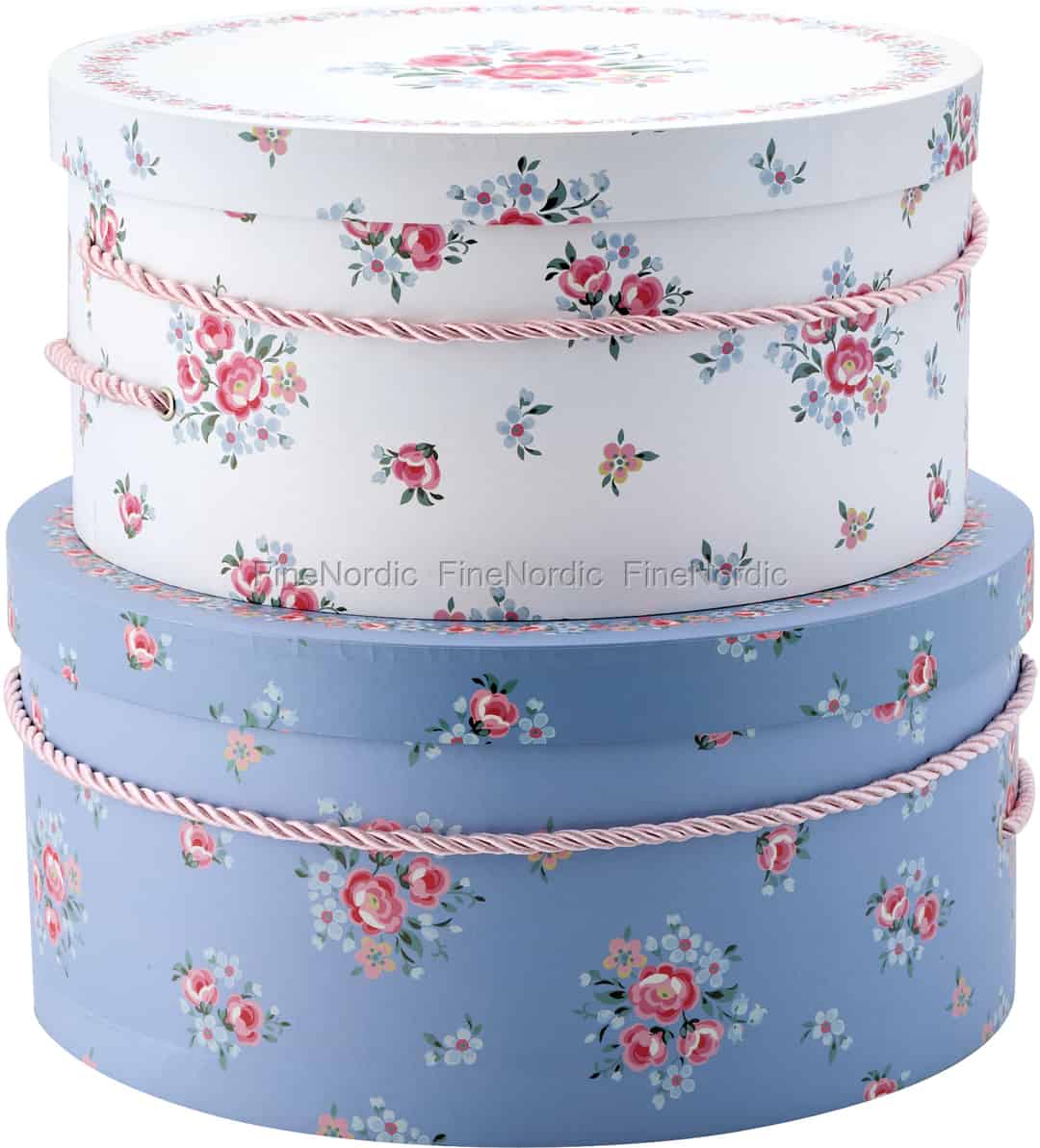 Das Nicoline White Aufbewahrungsboxen-Set ist mehr als nur eine stinknormale Aufbewahrungsoption. Die beiden runden Boxen sehen nämlich so gut aus, dass sie sowohl als Dekoration als auch als Aufbewahrung dienen können. Beide Boxen sind mit demselben schönen Blumenmuster verziert, aber der Hintergrund der größeren Box ist blau, während der andere weiß ist. Jede Box ist mit einer rosa Kordel umwickelt, welches einen schönen Akzent setzt. Bewahren Sie Ihre kleinen Gegenstände sicher in diesen schönen Kisten auf. Sie können sie in der Küche, im Wohnzimmer oder im Home-Office verwenden….also, Sie können sie buchstäblich in jedem Raum des Hauses verwenden. Sie sind auch ein schönes Geschenk für einen GreenGate Enthusiasten.