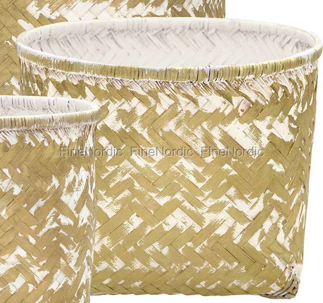 GreenGate Aufbewahrungskorb - Storage Basket Whitewashed Gold - Medium
