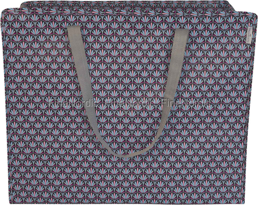 Brauchen Sie eine neue Aufbewahrungstasche die Sie für eine Vielzahl von Dingen und Gelegenheiten verwenden können? Dann ist diese wunderschöne Aufbewahrungstasche von GreenGate, namens Victoria Dark Grey Large, perfekt für Sie. Die Tasche ist dunkelgrau und hat ein wunderschönes geometrisches Blumenmuster. Dieses Design ist in den Farben Rosa, Blau und Grau, und passt zu vielen verschiedenen Musterns und Farben. Verwenden Sie die Tasche, um alte Kleider oder Spielzeug zu verstauen oder als Einkaufstasche wenn Sie in den Supermarkt gehen. Diese Aufbewahrungstasche wäre auch perfekt für einen Ausflug zum Strand oder ein Picknick in Park, da man alles was man braucht hineinpasst.