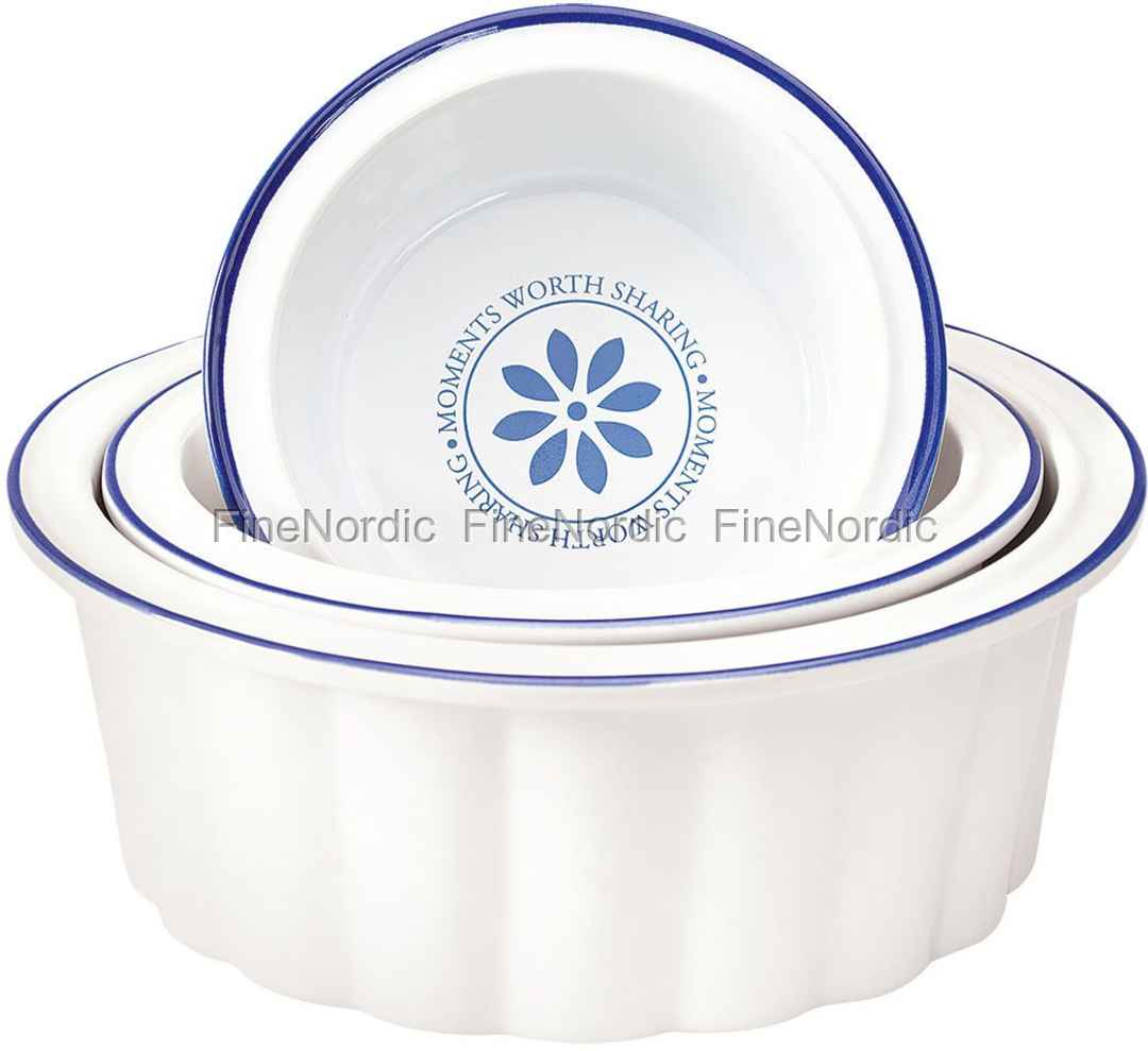 GreenGates Auflaufförmchen 3er Set Ramekin Creme mit blauem Rand schaut nicht nur äußerst attraktiv aus, sondern lässt sich dank der verschiedenen Größen auch vielseitig verwenden. Die Cremefarbene Schalen mit den in Blau geschriebenen Worten: „Moments worth sharing“, erinnern uns daran, dass viele der schönsten Momente in Leben, beim Essen mit lieben Menschen, geteilt werden. Schnell ist eine Quiche in den Ofen geschoben und die beste Freundin angerufen!