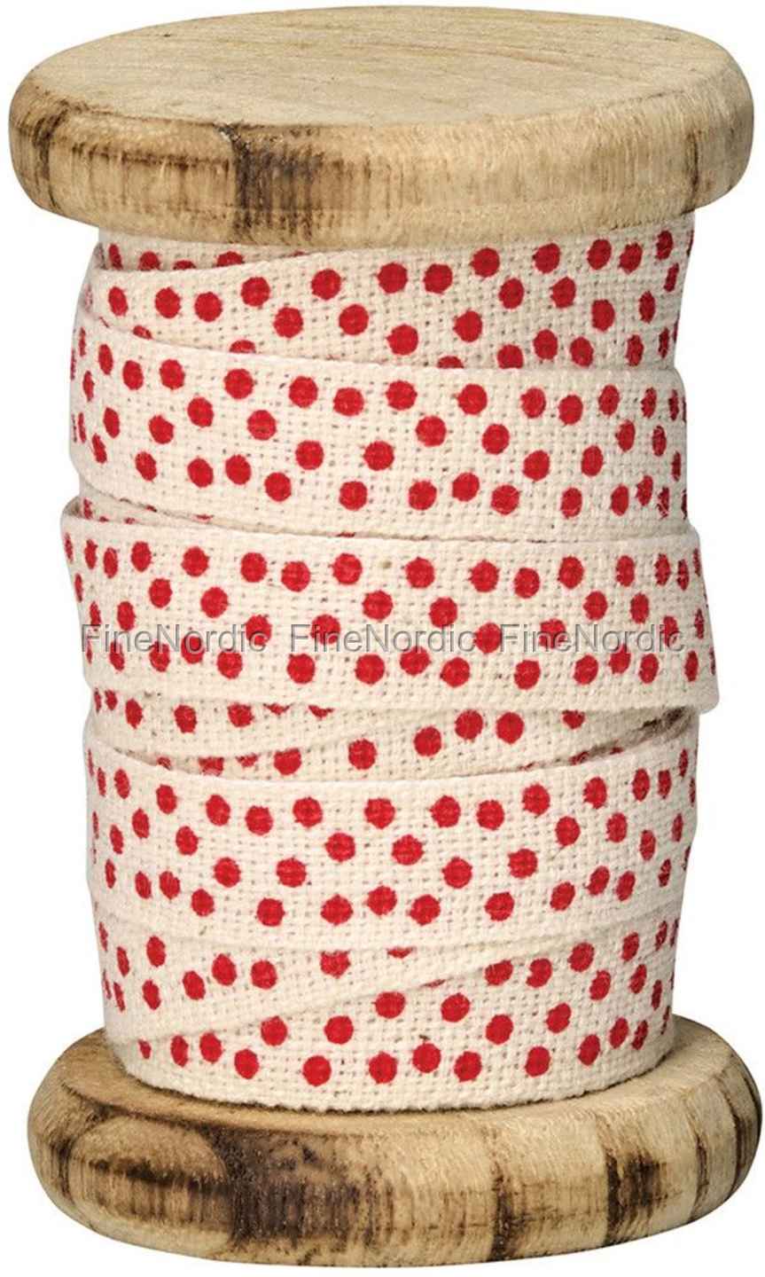 Ein hübsches Band kann man immer gebrauchen. So auch das attraktive GreenGate Band Spot Red, denn die fröhlichen roten Punkte machen nicht nur gute Laune, das Band ist auch vielseitig zu verwenden. Zum Aufhängen von Kränzen oder Trockenblumensträuße, zum Basteln, zum Einpacken von Geschenken, oder vielleicht zum Zubinden von zwei Rattenschwänzen? Praktischerweise kommt es aufgerollt auf einer Holzspule und lässt sich so leicht handhaben. Das Band ist ganze 5 m lang, somit können Sie viele verschiedene Verwendungszwecke dafür finden.