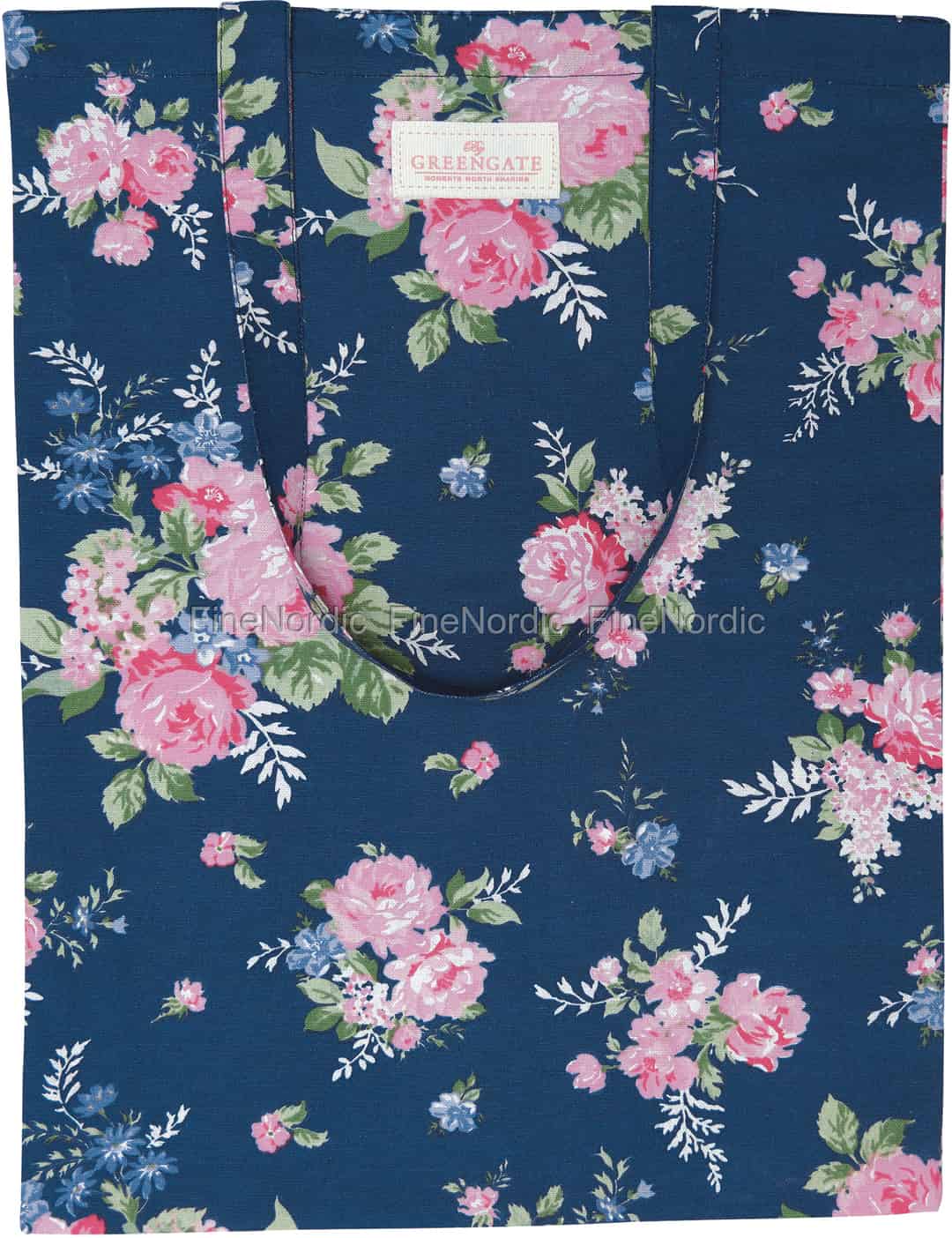 Niemand sonst kann Farben so schön kombinieren wie GreenGate! Schauen Sie sich doch nur mal diese schöne Baumwolltasche Rose Dark Blue an. Der Hintergrund ist in einem fantastischen Blau und dies ist mit sehr detaillierten Blumensträußen geschmückt. Die Blumensträuße sind in verschiedenen Blau- und Rosatönen sowie in Grün und Weiß gehalten. Sie alle passen sehr gut zusammen und das Endergebnis ist diese herausragende Tasche. Nehmen Sie sie zum Einkaufen mit oder wenn Sie ein paar kleinere Gegenstände von einem Ort zum anderen transportieren möchten. Es ist immer gut, eine Stofftasche im Auto mitzunehmen, denn es könnte ja sein, dass Ihnen plötzlich einfällt Sie müssen im Laden noch ein paar Lebensmittel einkaufen oder was Leckeres vom Bäcker mitnehmen. Da man nie zu viele Taschen haben kann, schauen Sie sich doch gleich auch die anderen GreenGate Taschen an, die wir in unserem Webshop anbieten.