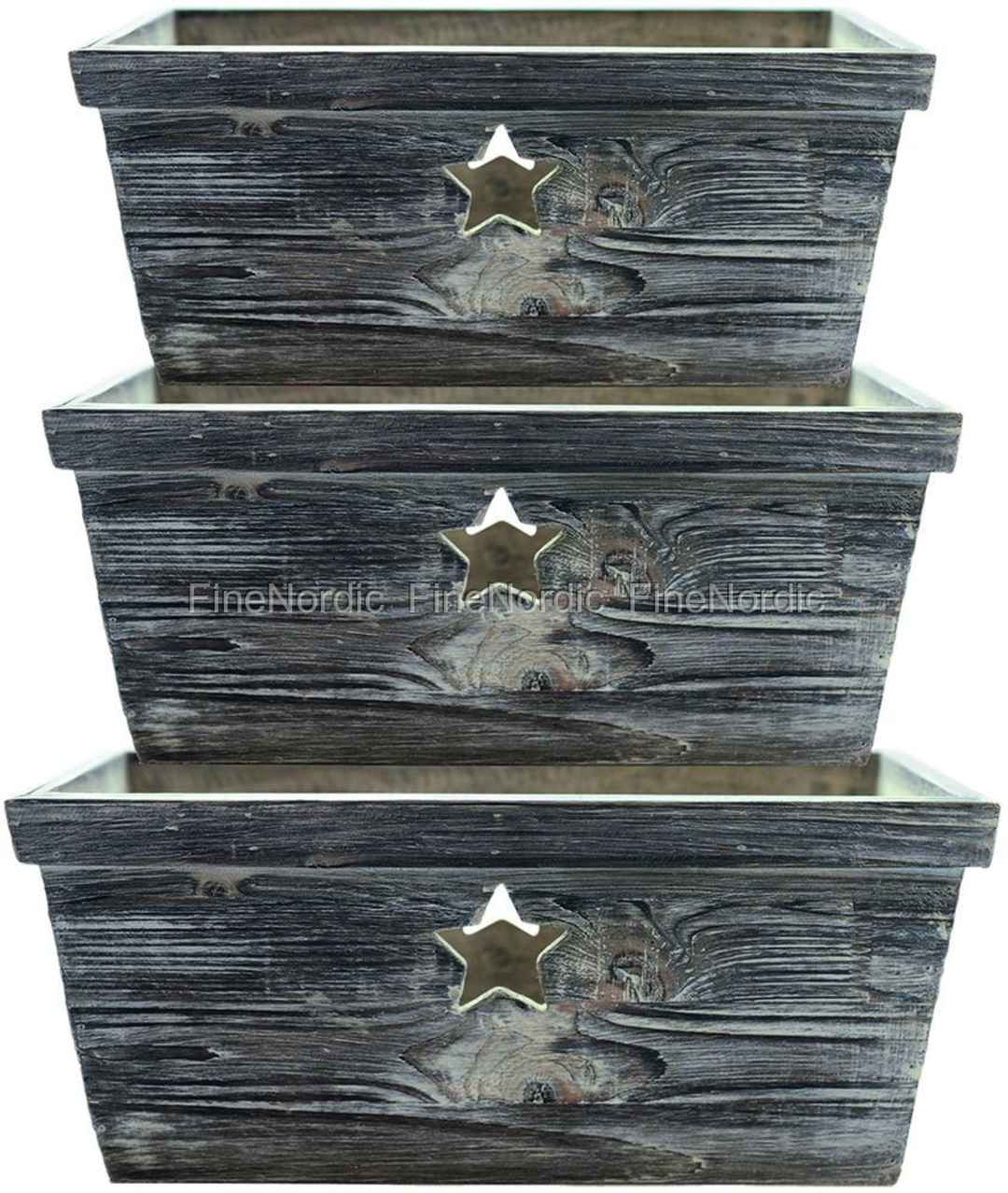 GreenGate Box - Wood Box Star with Handle - Nature - 3er Set