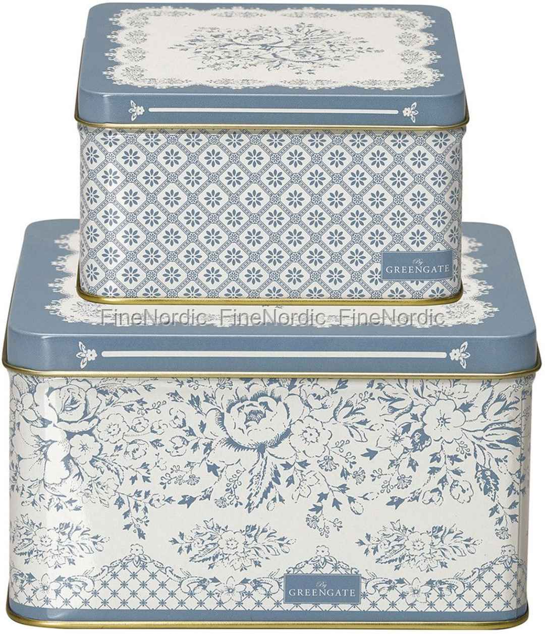 Quadratisch, praktisch und ach so schön anzusehen ist das Dosen Set Jenny Dusty Blue von GreenGate. Farblich bestens auf einander abgestimmt, mit verschiedenen Blumenmustern und Größen. Die große Dose hat die Maße: 15 cm x 15 cm und ist 9 cm hoch und die kleine Dose ist 11,5 cm x 11,5 cm mit einer Höhe von 6 cm. Ein dekorativer Aufräumhelfer, der nicht nur toll ausschaut, sondern auch praktischerweise überall einsetzbar ist. Ob in der Küche für Gewürze und Co. oder in Bad für Schminkutensilien, oder aber in Arbeitszimmer für kleine Büroartikel aufzubewahren. Das Jenny Dusty Blue Dosen Set von GreenGate sorgt für Ordnung und für einen attraktiven Blickfang in Raum.