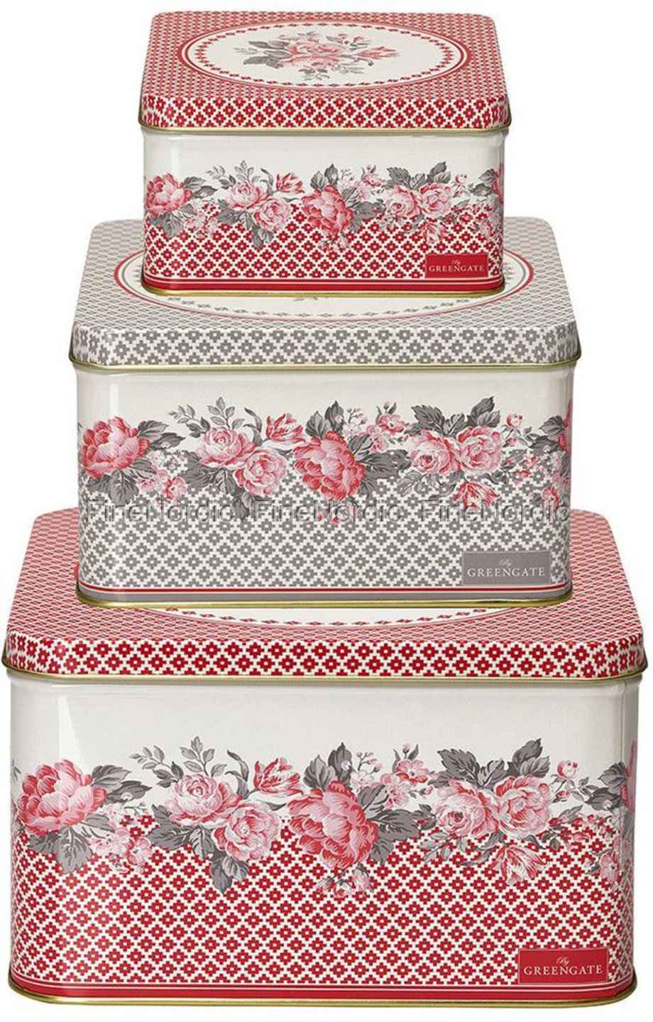 Das 3er Dosen Set Shirley Red von GreenGate harmoniert nicht nur farblich perfekt miteinander, auch die attraktiven Blumenmuster sind ideal aufeinander abgestimmt. Aber das quadratische Dosen Set ist nicht nur schön anzuschauen, sondern es eignet sich auch wunderbar zum Aufbewahren von Fotos, Büroartikel, Gewürzmischungen und mehr. Ob in der Küche, dem Esszimmer oder in Wohnzimmer, jeden Raum schmückt das gut aussehende Shirley Red Set von GreenGate. Das Dosen Set Shirley Red hilft beim Ordnung halten und ist dazu noch eine sehr schöne Dekoration für Ihr Zuhause.