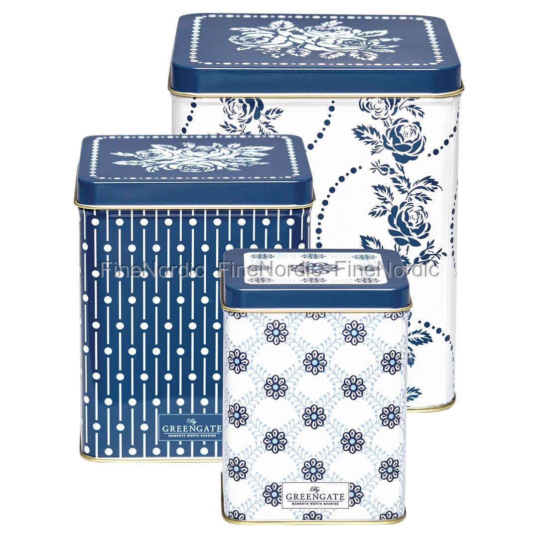 Dosen Tin Square Box Fleur Blue 3er Set von GreenGate.