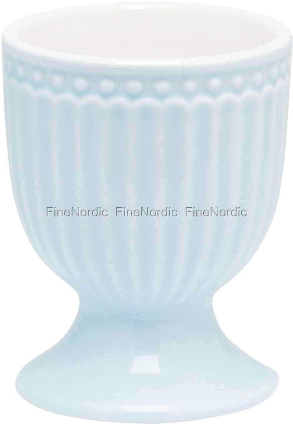 Genießen Sie gerne ein Ei zum Frühstück? Dann sind Eierbecher ein Must-Have für Ihre Küche. Und wenn Sie gerne verschiedene GreenGate Geschirrserien auf dem Tisch kombinieren, dann ist dieser schlichte, jedoch stilvolle Porzellaneierbecher genau das richtige für Sie. Die hellblaue, strukturierte Außenseite des Alice Pale Blue Eierbechers bietet einen gutaussehenden Gegensatz zu seiner hellen, glatten Innenseite.. Dank seines ungemusterten Designs kann er gut mit blumigen und gemusterten GreenGate Serien kombiniert werden Sie können den Eierbecher aus GreenGates Alice Pale Blue Serie auch gut mit anderen Farben der Alice Everyday Kollektion mischen umso etwas mehr Farbe und Abwechslung auf Ihren Tisch zu bringen.