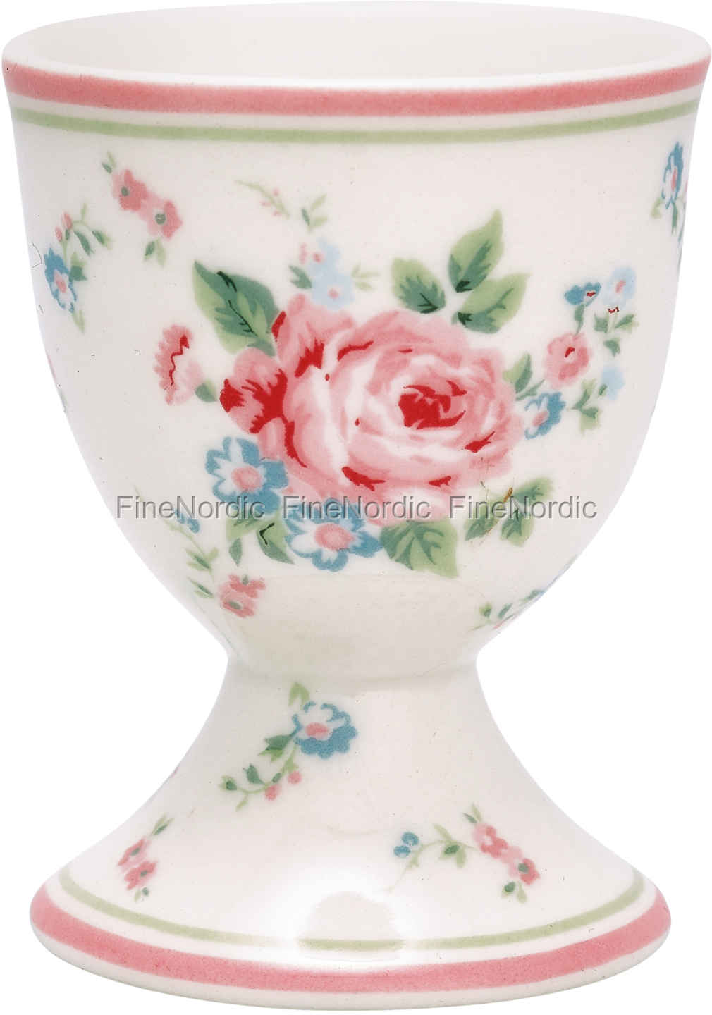 Der Eierbecher Marley White von GreenGate ist mit einem romantischen Blumenmuster bedeckt und um den oberen und unteren Rand des Eierbechers ist ein rosa und hellgrüner Streifen zu sehen. Echte GreenGate-Fans merken sofort, dass dieser Eierbecher nur aus dem Hause GreenGate stammen kann. Das verträumte Blumendesign und die schöne Farbkombination sind so typisch für GreenGate. Ein perfekter Start in den Tag bedeutet ein leckeres Ei aus diesem bildhübschen Eierbecher zu essen. Der Marley White Eierbecher ist eine charmante Ergänzung zum Rest der GreenGate Marley White Serie.