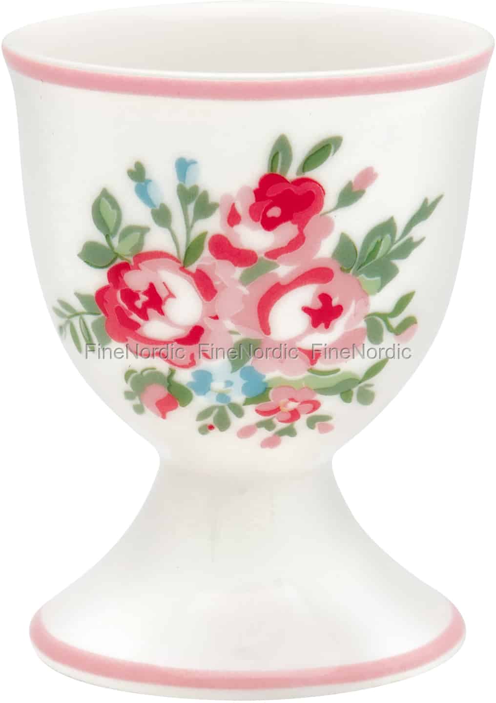 Genießen Sie an einem Sonntagmorgen auch gerne mal ein gemütliches Frühstück mit frischen Brötchen, Butter, selbstgemachter Marmelade und einem gekochten Ei? Der Gabby White Eierbecher von GreenGate hält nicht nur Ihr Frühstücksei für Sie parat, sondern sieht dabei auch fantastisch aus. Der Porzellan Eierbecher ist mit einem schönen Blumenmuster verziert und entlang des oberen und unteren Randes sehen Sie eine dekorative rosa Linie. Der Eierbecher kann gut mit den Gabby White Produkten, sowie auch mit Geschirr von vielen anderen GreenGate Serien, kombiniert werden. Das Mischen und Kombinieren der verschiedenen Serien ist eines der Dinge, die GreenGate Fans so sehr an GreenGate mögen, neben den wunderbaren Designs und der guten Qualität natürlich.