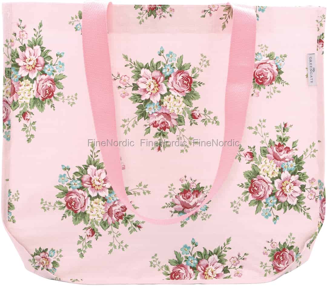 Mit dieser hübschen Aurelia Pale Pink Shopper Bag von GreenGate können Sie stilvoll einkaufen. Der hellrosa Hintergrund ist mit schönen Blumensträußen bedeckt. Die Tasche lässt sich leicht an den zwei praktischen rosa Bändern halten und tragen. Auf der Seite der Tasche ist das GreenGate-Etikett aufgenäht. Nehmen Sie es mit in den Laden, in den Zoo, in die Bibliothek oder in den Pool. Auf diese Weise können Sie problemlos ein paar Dinge darin transportieren. Sehen Sie sich alle fantastischen Produkte von Aurelia Pale Pink an. Sie finden sie alle in unserem Webshop.