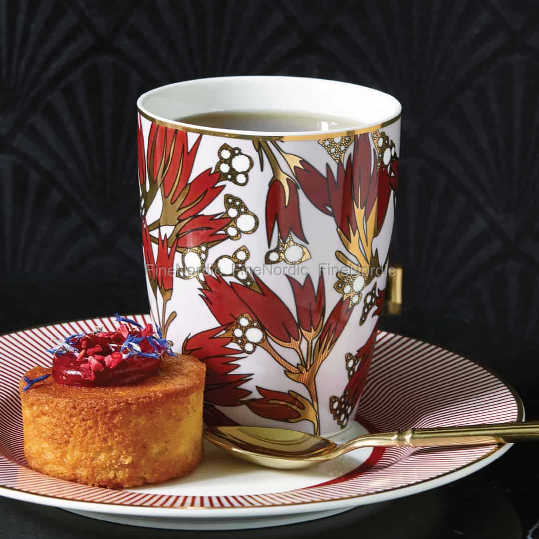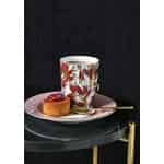 Starten Sie gut in den Tag mit einer Tasse heißen Kaffee am Morgen. Und wenn Sie ihn aus dieser exquisiten Latte Cup genießen, bedeutet das gleich das Doppelte an Vergnügen. Das rot-goldene Blumenmuster sieht auf dem hellen Hintergrund der Tasse einfach fantastisch aus und die goldene Linie am oberen Rand der Tasse fügt ein schönes kleines Detail hinzu. Dieser Becher fasst bis zu 400 ml und sollte wegen seiner goldenen Akzente nur von Hand gewaschen werden. Stellen Sie ihn mit den anderen Florette Porzellanstücken auf den Tisch oder mischen Sie ihn mit ein paar anderen GateNoir Serien, wie zum Beispiel Corine. Indem Sie verschiedene Serien miteinander mischen, kreieren Sie einen aufregenden und bemerkenswerten Tisch, über den Ihre Gäste noch lange nach dem Ende der Feier sprechen werden.