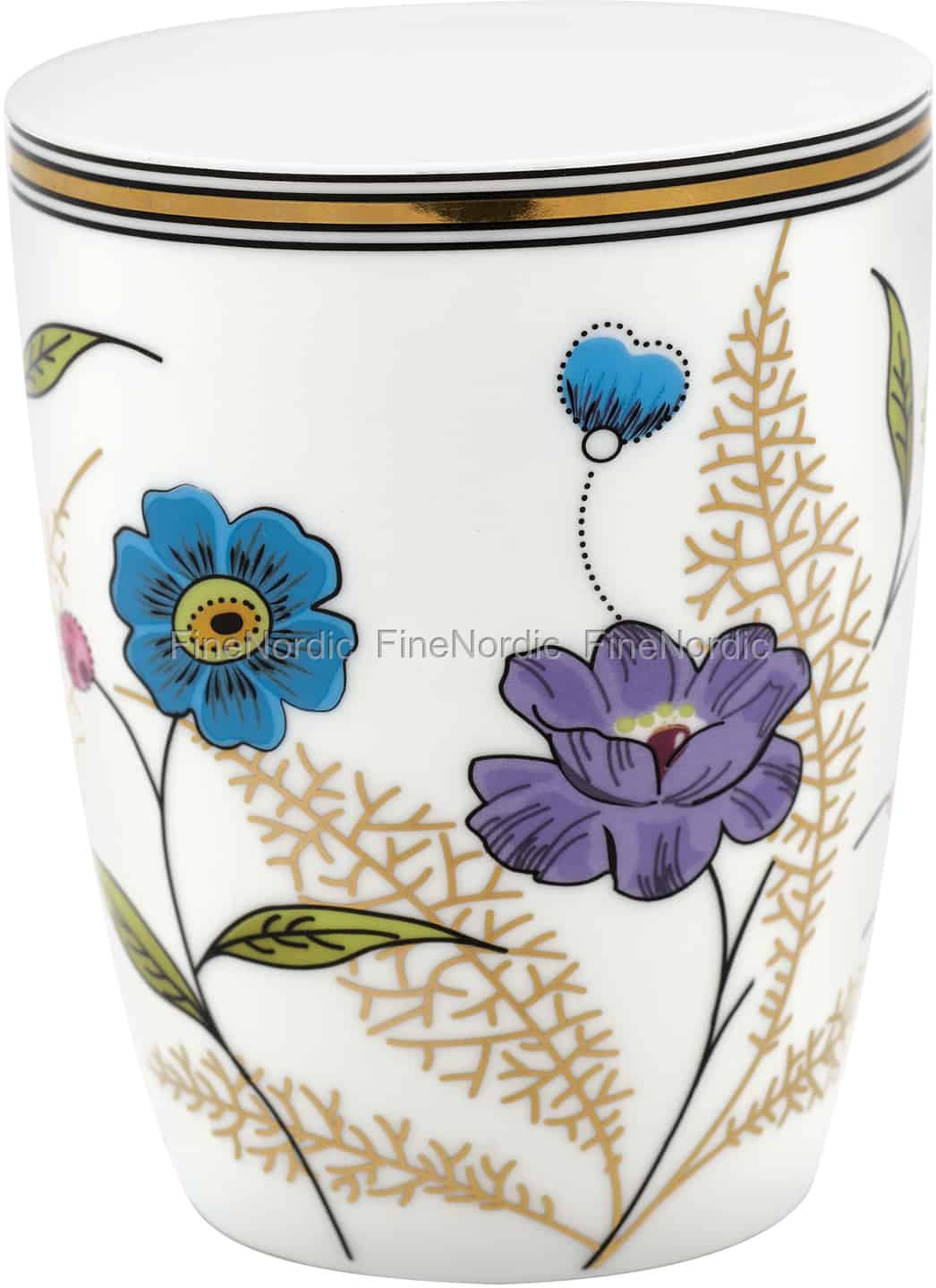 Wir lieben das schöne Farbenspiel in Kombination mit den goldfarbenen Details dieser Tasse. Die Tiphanie White Latte Cup aus der exklusiven GateNoir Kollektion von GreenGate ist wirklich ein Hingucker. Die verschiedenen Blumen in den Farben Blau, Rosa, Grün und Lila sowie die goldenen Farnblätter und der goldene Rand zeichnen diese Porzellantasse aus. Stellen Sie sie mit dem dazu passenden Krug und Teller auf den Tisch oder mischen Sie sie mit ein paar anderen GateNoir Geschirrprodukten. Dieser Latte Becher sollte nur von Hand gewaschen werden, damit Sie noch lange Freude an seinen goldfarbenen Details haben. Sie können damit eine Sammlung verschiedener GateNoir Latte Cups starten oder den Tiphanie White Latte Becher als Geschenk für einen GateNoir Sammler nutzen.