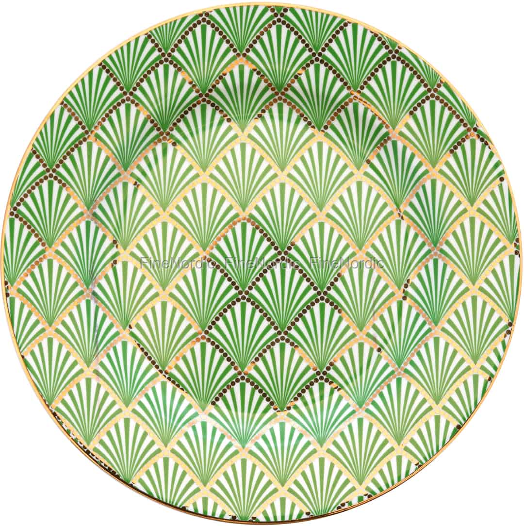 Das grüne fächerartige Muster in Kombination mit den goldenen Akzenten bringt diesen Teller wirklich zum Leuchten. Die Fan Green Teller aus der GateNoir Kollektion von GreenGate ist auf dem Tisch immer willkommen. Verwenden Sie ihn als Frühstücksteller, Mittagsteller, Dessertteller oder Snack Teller und genießen Sie Ihr Essen von diesem exquisiten runden Teller. Es verleiht Ihrem Tisch einen extra Farbklecks und Sie können ihn mit der passenden Latte Tasse oder mit Geschirr aus den anderen GateNoir Serien kombinieren. Decken Sie Ihren Tisch so farbenfroh und luxuriös ein, wie Sie möchten, und das schöne Porzellan von GateNoir macht es Ihnen sehr einfach.