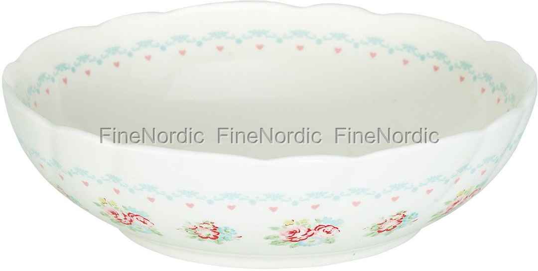 Mit der Abelone White Salatschale in romantischen Landhausstil und mit nostalgischer Form lässt sich der Salat ganz besonders schön präsentieren. Ob grüner Salat, Obstsalat, Kartoffel- oder Nudelsalat all das und mehr kann man in der schönen Salatschüssel seinen Gästen stilvoll reichen. Aber auch als Obstschale auf der Küchenzeile macht sie sich perfekt. Da ist das Obst nicht nur gut aufgehoben, sondern die Schale dient auch gleich als Dekoration. Das romantische Abelone Muster besteht aus roten Herzchen und Blumen und auch die Farben hellblau, gelb und hellgrün sind in dem Muster vorhanden. Die Abelone White Salatschale ist eine Schüssel, die sich gut mit vielen anderen GreenGate Serien kombinieren lässt.